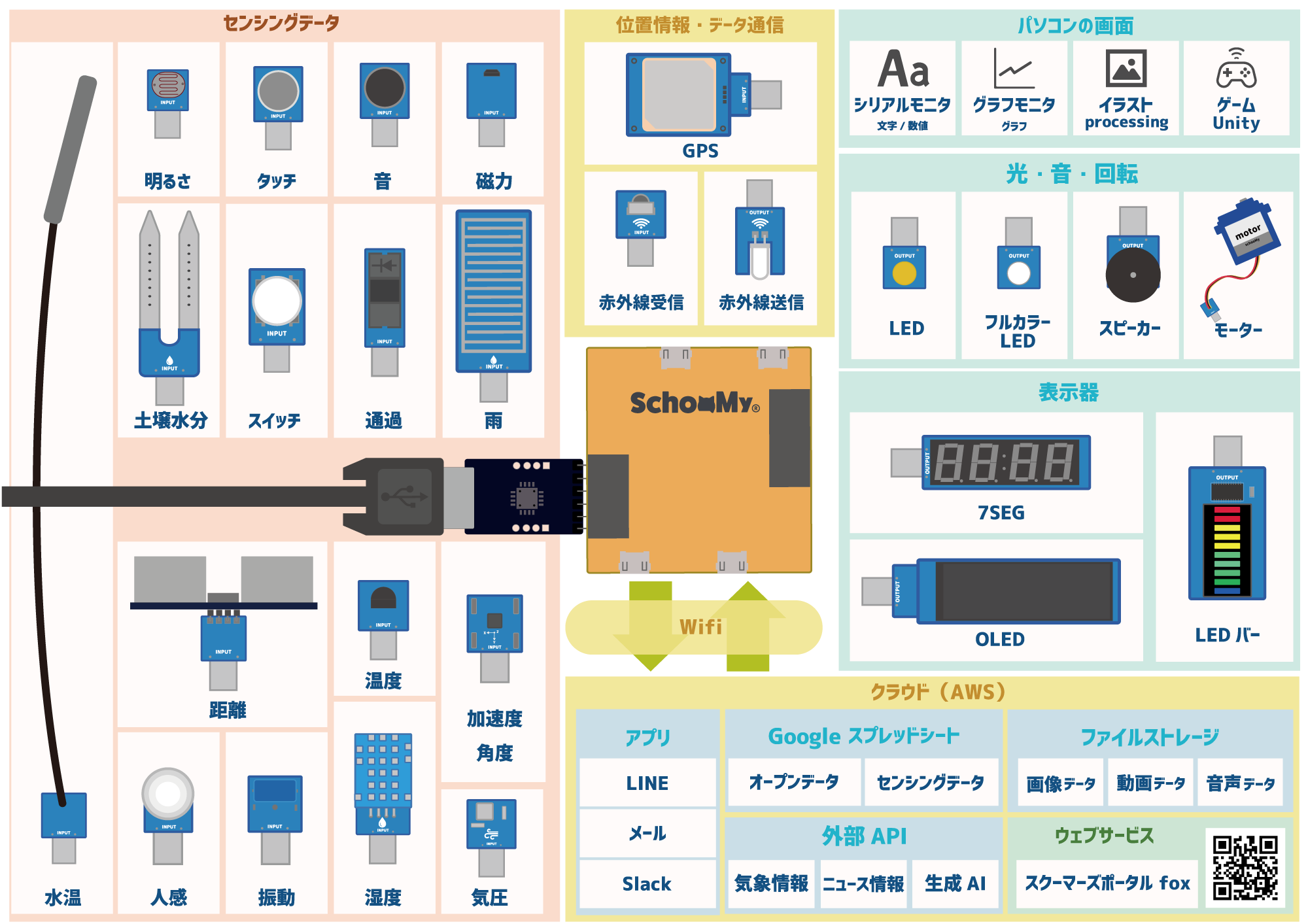 小学生が探究するためのコンピュータとして生まれたスクーミーボードが今や、半田付けもおこなずに、そのまま使える便利さが多くの方に受け入れられ、自ら、家庭や地域を改善するツールとして、世の中に新しく広まってきているのです。
