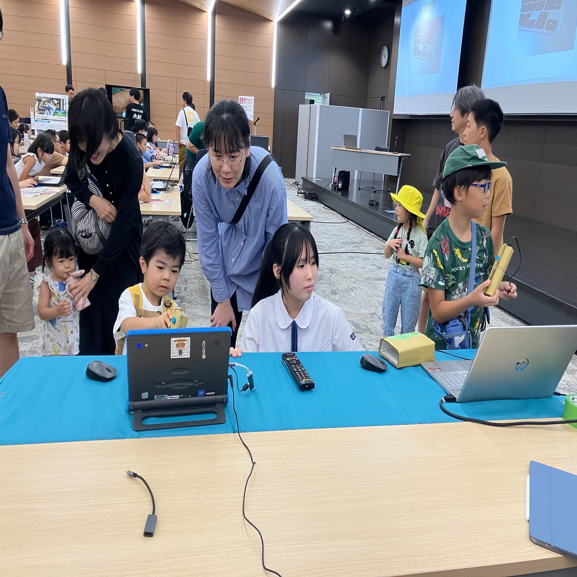 スクーミーのブースでは、ゲームゾーン、プログラミングゾーン、コントローラー工作ゾーンの3つのゾーンを作り、お子様から大人の方まで実際に体験していただきました。