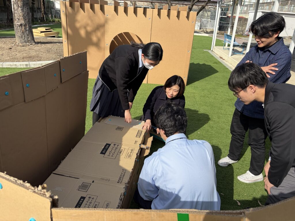 段ボールを使った避難所環境づくりと、センサーを組み合わせた実践的な防災教育プログラムを実施します。地域の社会課題解決として「防災」を切り⼝に、⼦どもたちが1⽇で実際に制作し、データを取る実践的なワンデイイベントです。
